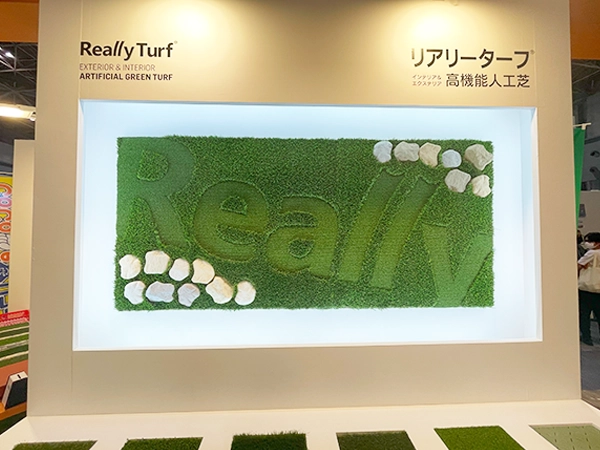 弊社グリーンフィールドが販売するリアリーターフ®︎は、高級感ある質感や優れた機能性を備えており、展示会ブースから結婚式のウェルカムスペース、パブリックビューイングまで幅広い用途に対応します。イベントの雰囲気づくりや来場者の印象に大きな影響を与える装飾として、人工芝の活用を検討してみてはいかがでしょうか。