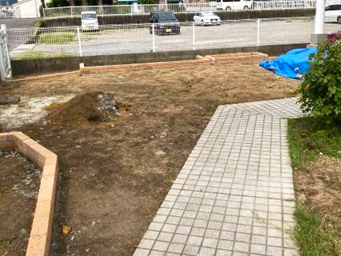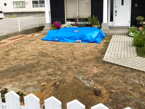 しかしながら、防草シートの検索中に目にした人工芝の情報が気になり、砂利敷きの庭から人工芝の庭へと視点が移っていったようです。元々、天然芝の後に化粧砂利を敷くことに関しては無機質なお庭になりそうな為に積極的ではない部分があったため、一気に人工芝敷設の方向に傾いたとのことです。