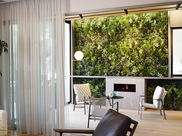 漆喰や様々なデザインの壁紙のなか、また違う雰囲気を演出することのできるビスタフォリア®は、メンテナンスフリーで緑を多く取り入れたいインテリアの提案に最適です。