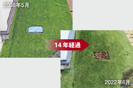 リアリーターフの施工事例では、14年経っても、目立った劣化が見られない場合もあります。